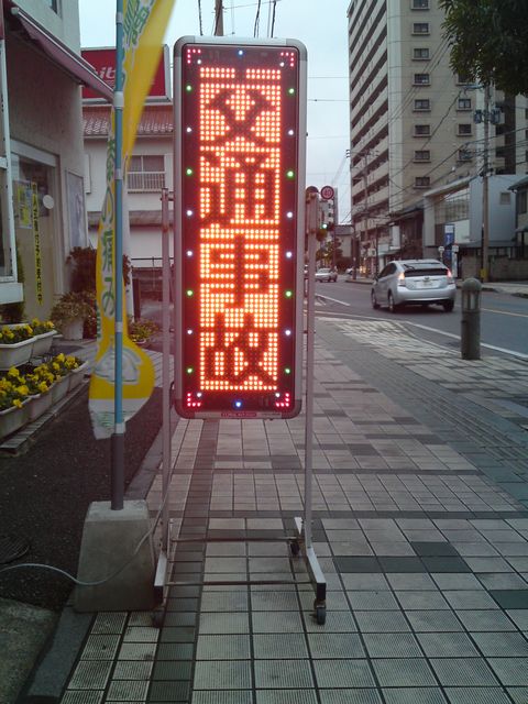 写真のLED電光掲示板を近くで見たら、エムケー精工社製って書かれてありましたが、高速道路などの交通情報表示器の1番大きなメーカーですので、眩しかったです。